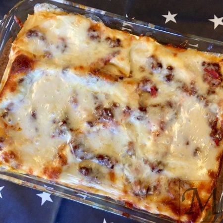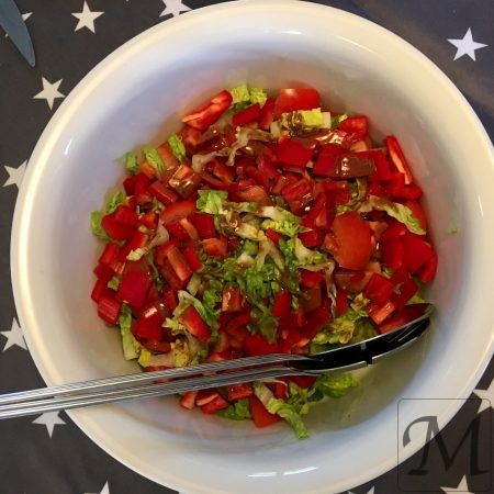 Med rester fra gårsdagens måltid i køleskabet, var det oplagt at bruge disse. Der var dog ikke helt nok til endnu en omgang spaghetti og kødsovs til 5, så med ekstra gulerødder fik jeg fremtryllet en lækker lasagne med rigtig mange grøntsager. Hertil en helt almindelig salat med tomat, snackpeber og olie-/eddikedressing.