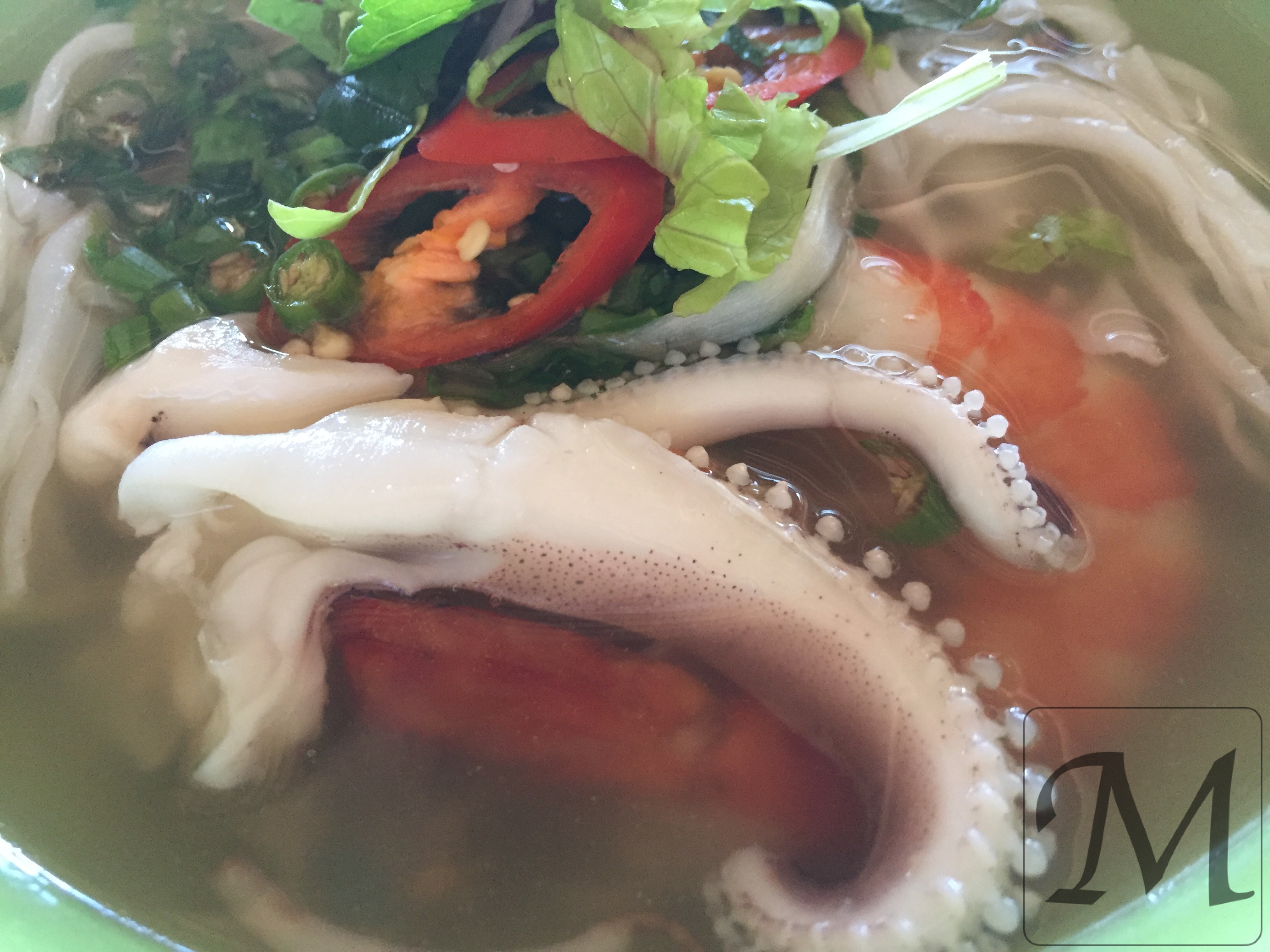 Dagens mad 31. juli 2017 – Nærende morgenmad med blæksprutte 31. juli 2017 / For en enkelt gangs skyld er den daglige nudelsuppe med kylling skiftet ud med dagens specialitet – nudelsuppe med blæksprutte og rejer. Især de små grønne chilier og peber er med til at skrue temperaturen ekstra op. Så er dagen i gang. Abonnér på Madkalender.dk Få nye opslag som den første! Email Address Ja tak Join 77 other subscribers Share this: Click to share on Facebook (Opens in new window) Facebook Click to share on X (Opens in new window) X Click to share on Pinterest (Opens in new window) Pinterest